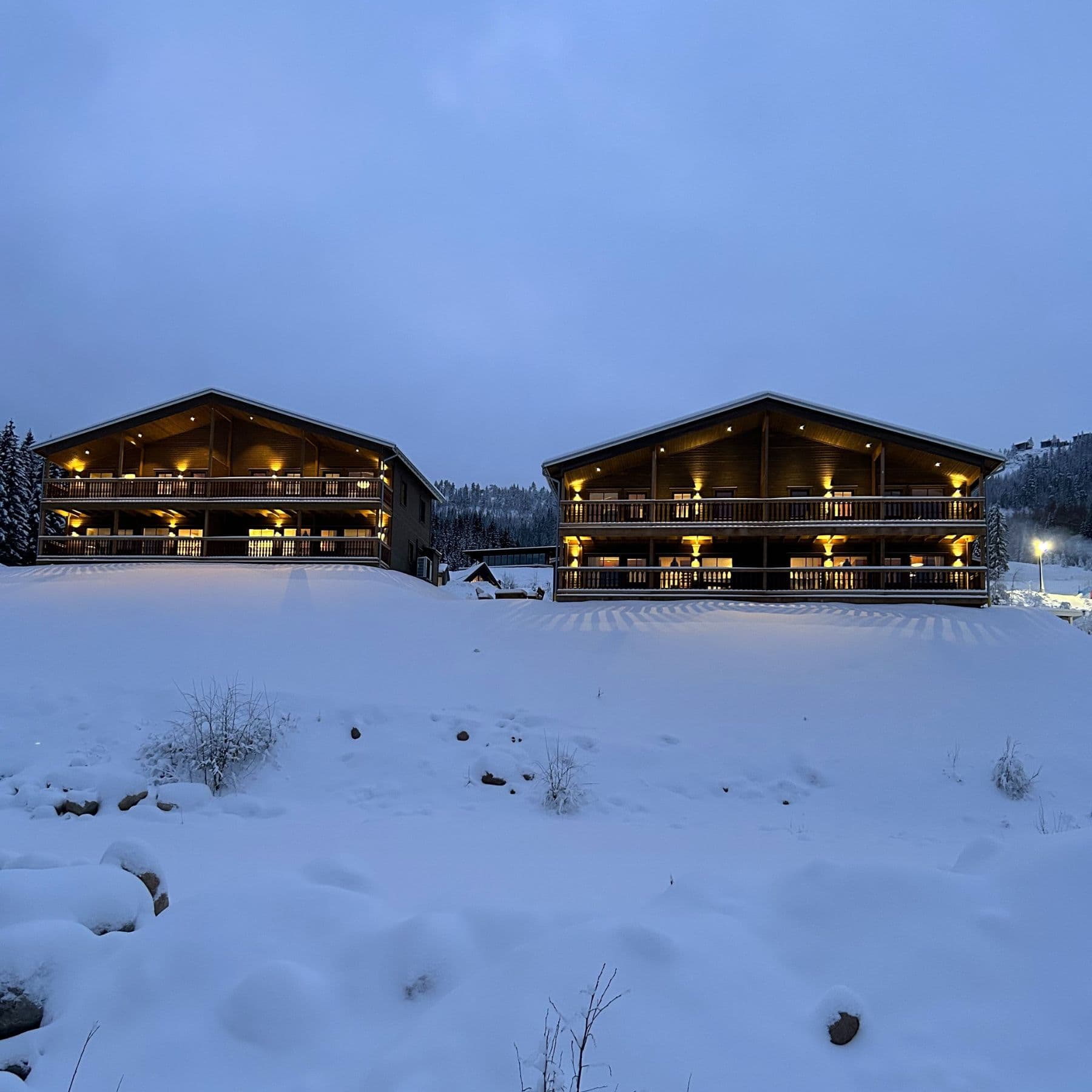 Två boenden på 110 kvm i två plan vardera och 8+2 bäddar med ski in/out läge