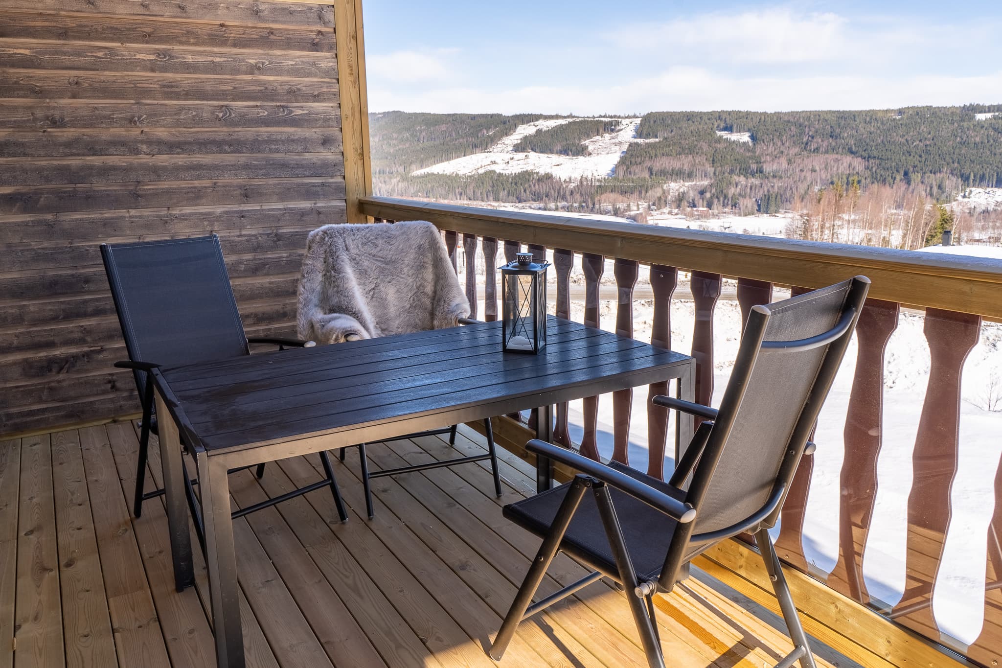 Efter den dag i backen är det skönt att koppla av på någon av terasserna mot dalen, fantastisk läge och utsikt mot Klarälven